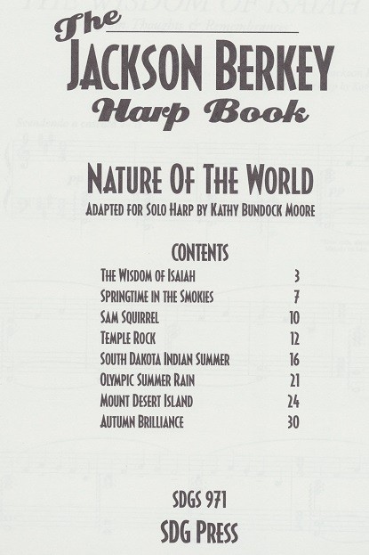 These are new works for solo pedal harp written by the featured keyboard artist with Mannheim Steamroller, Jackson Berkey. Sam Squirrel and Summer Rain have arpeggiated textures, Temple Rock is a hard rock arrangement, Springtime in the Smokies and Mount Desert Island were originally instrumental ensembles now arranged for solo harp. Autumn Brilliance is a piano masterpiece for the advanced harpist — it has 157 pedal changes in slightly less than two minutes. Wisdom of Isiah and Indian Summer were originally vocal pieces. South Dakota Indian Summer and Olympic Summer Rain are also in the collection. ADVANCED PEDAL HARP.