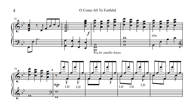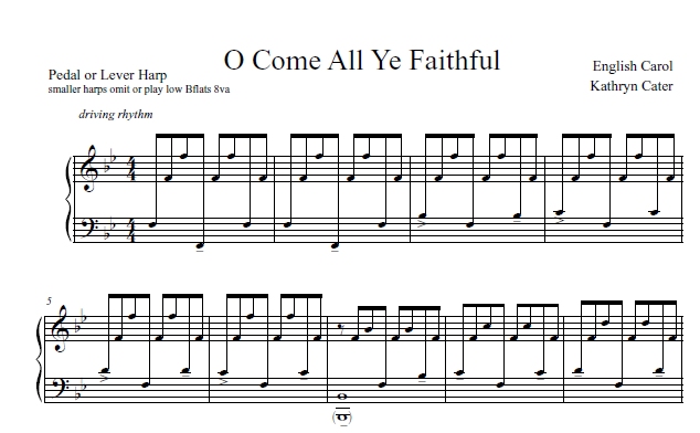 UPPER INTERMEDIATE ALL HARPS – here’s a great solo that is uplifting. Cater has given this English carol new life with driving rhythm and syncopation. Listen to the sound file and take a look at the sample images. YouTube below.