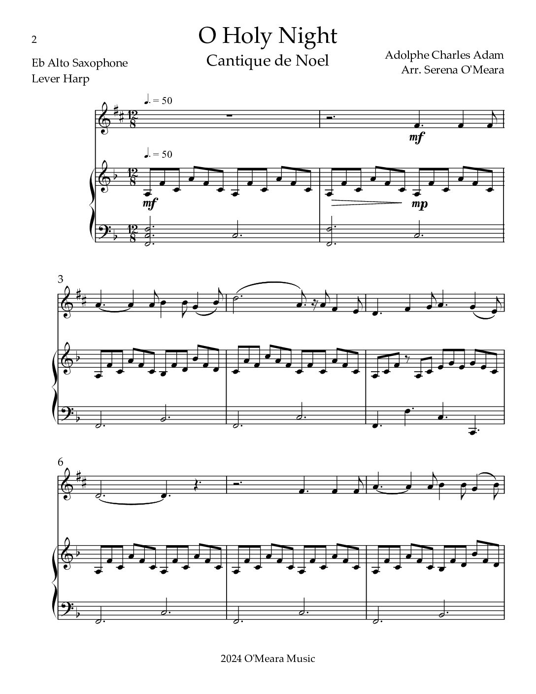 O Holy Night, Duet for Eb Alto Saxophone & Lever Harp