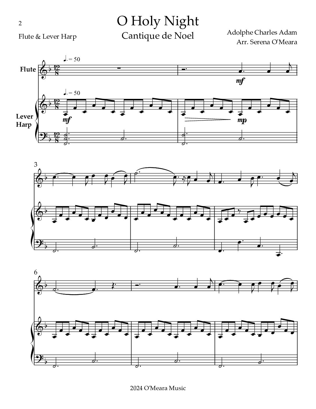 O Holy Night, Duet for Flute & Lever Harp