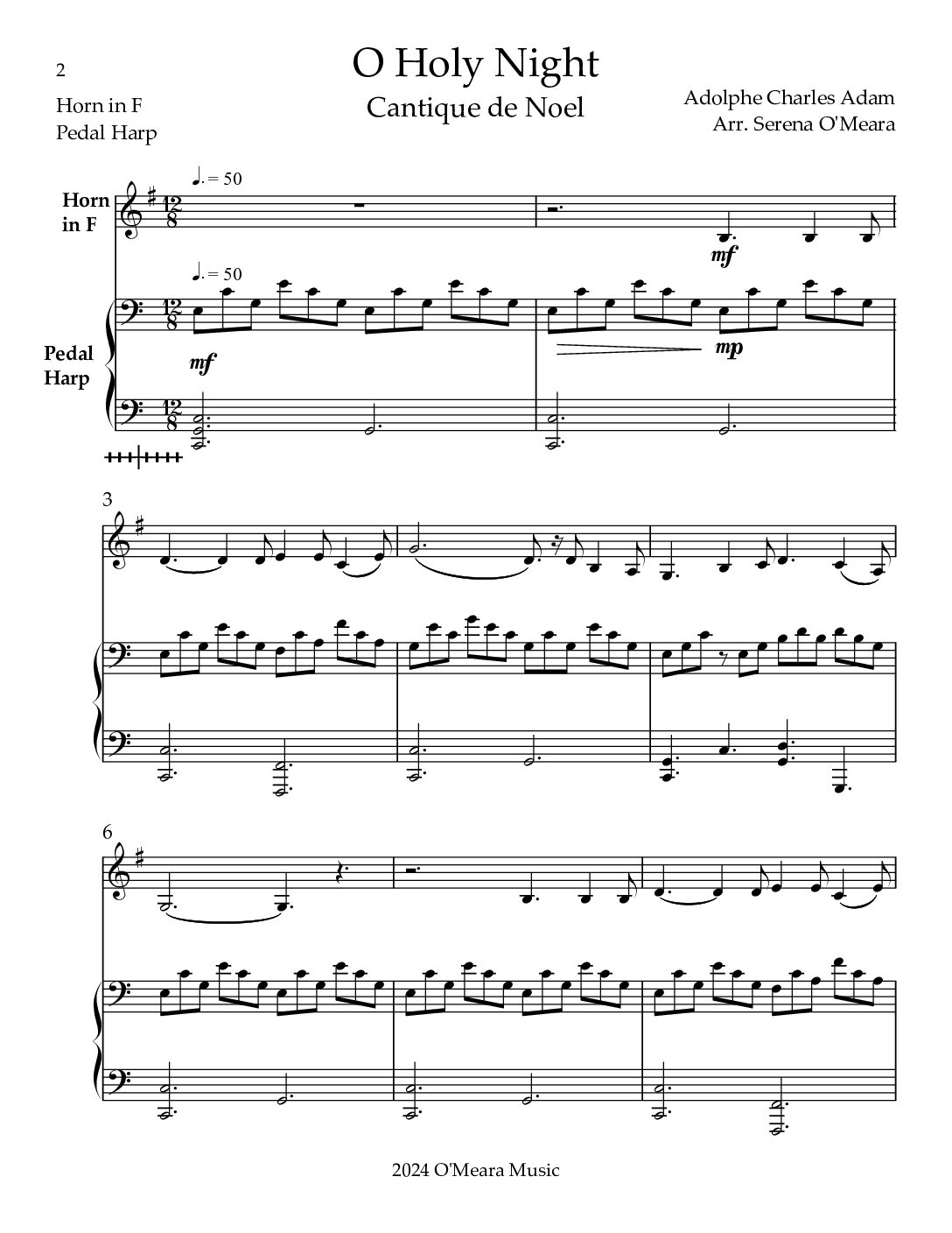 The full range of the Pedal Harp provides a beautiful complement to the melody written by Adolphe Adam in 1847. The melody of the two verses varies in rhythm & pitches. Harp Pedal changes are marked. Score & Parts, 17 pages