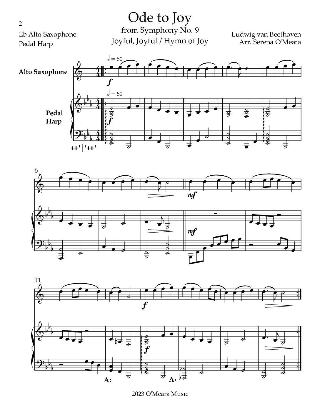 Ode to Joy, Duet for Eb Alto Saxophone & Pedal Harp