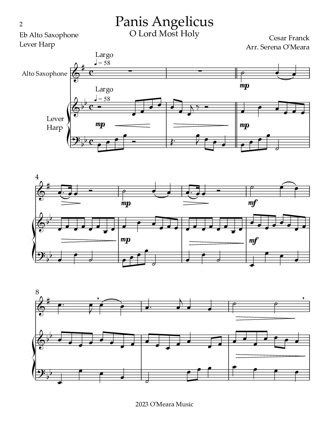 Panis Angelicus, Duet for Eb Alto Saxophone & Lever Harp
