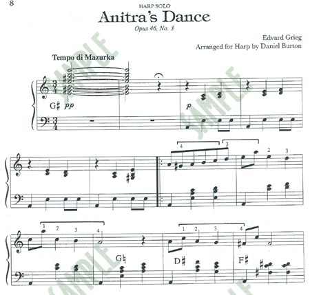 Keys of Eb, Db, and Am, accidentals, not very difficult. UPPER INTERMEDIATE PEDAL HARP
