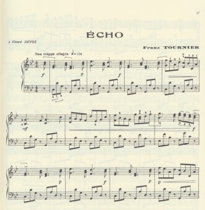 Contents: Première romance sans paroles (Casterède) • Adagietto, Fileuse, Duo (Damase) • Berceuse pour la poupée chinoise, Les quatre doigts du triton (Devos) • Bourrée (Dubois) • Écho (Tournier)