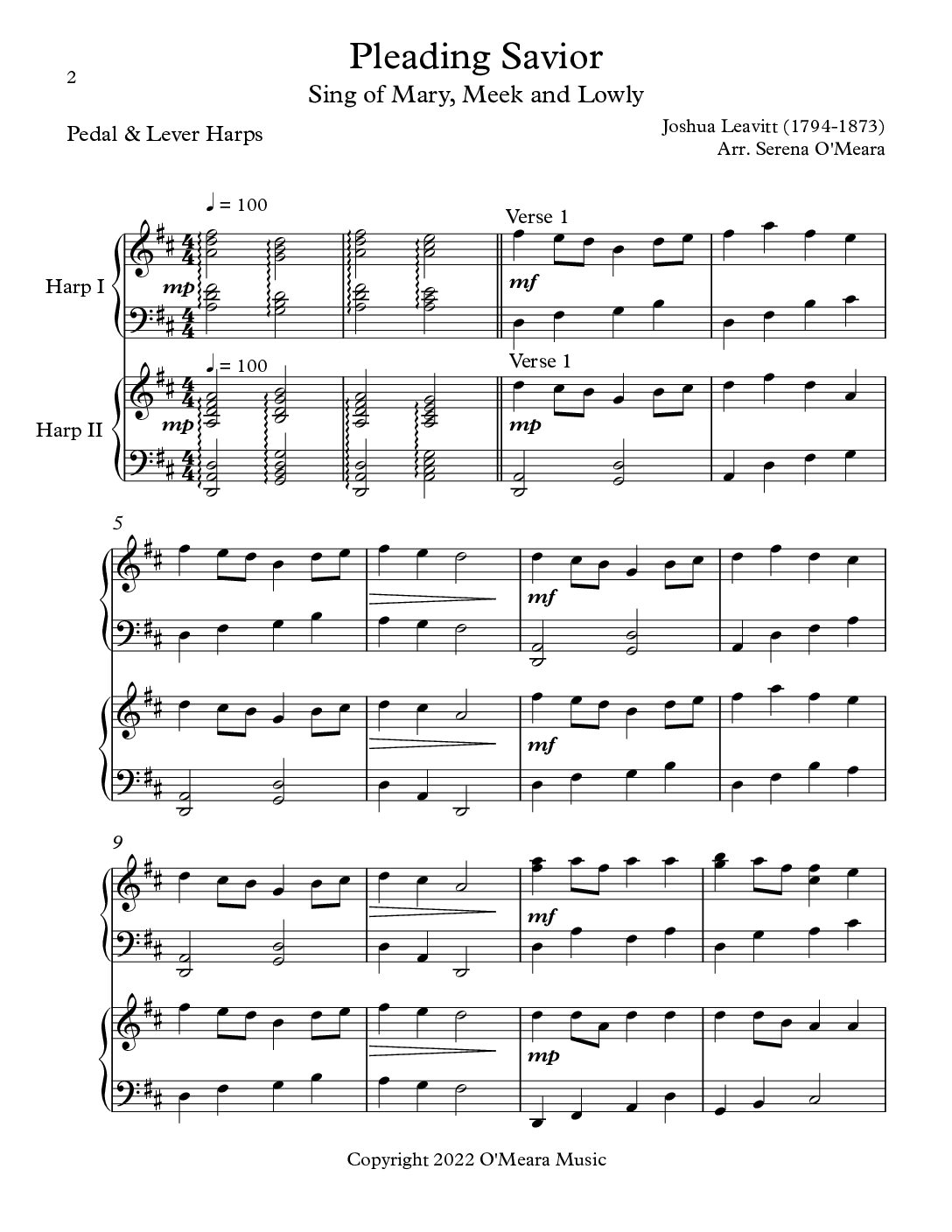 Congregationalist minister, Joshua Leavitt wrote Pleading Savior in 1831 to include in his book, The Christian Lyre. Since then the melody has been set to other words for many Christian religions. In 1938 Fr. Roland Ford Palmer, set the poem, Sing of Mary, Meek and Lowly, to this melody. Score & Parts, 15 pages.