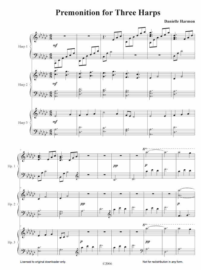 Your respect of the copyright laws will help support the musicians and arrangers who created this music, and will encourage more harp music to be produced in the future. Please do not make multiple copies to pass on to others. You can help keep downloadable harp music viable and available by encouraging your students, friends, and relatives to purchase their own copies. Thank you for your assistance in this endeavor.