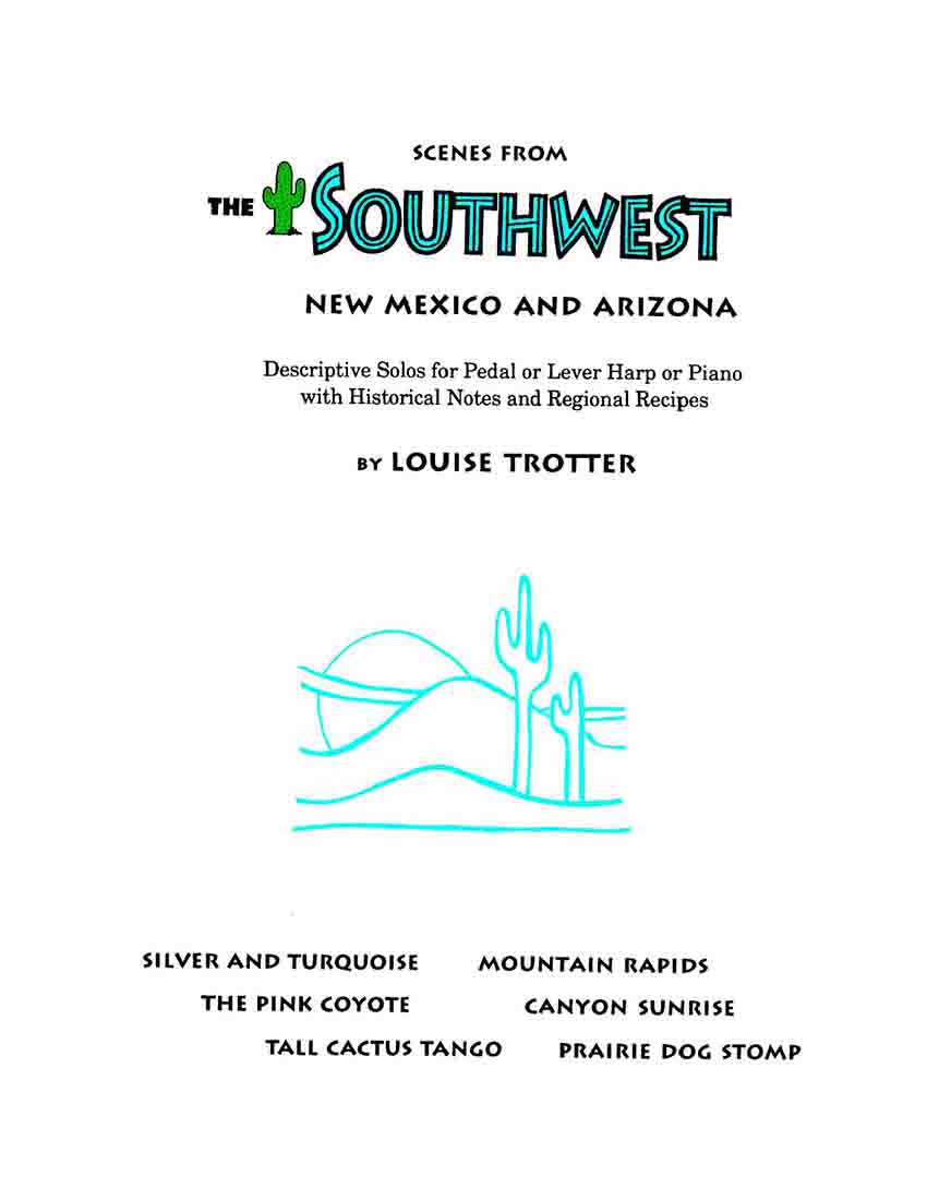 These compositions were written during Ms. Trotter’s prime, and they are clever, well written and especially Canyon Sunrise and Mountain Rapids are really beautiful. The book is a treasure, with illustrations and recipes. Louise has a love for New Mexico and Arizona, and it is reflected in this book.