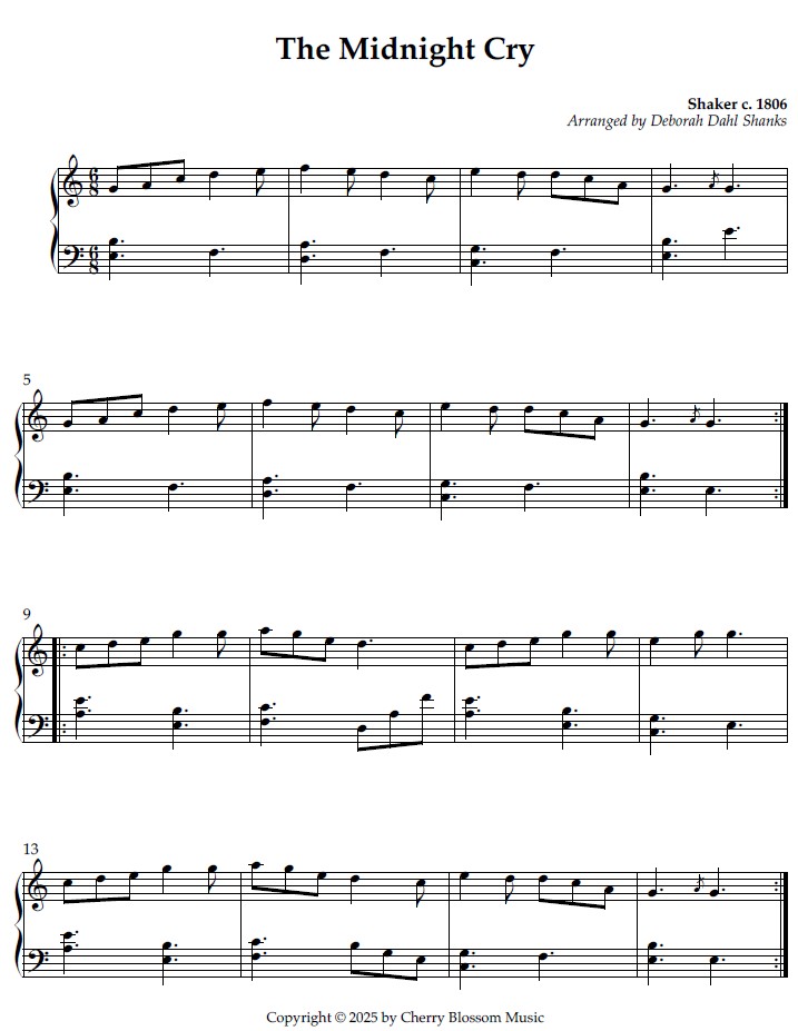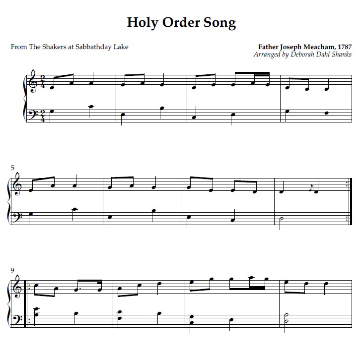 “Shaker Hymns for the Small Harp is a collection of 20 Shaker hymn tunes from that religious and communal tradition. The arrangements are appropriate for a lever harp of 26 strings and with 1 octave below middle C and tuned to Eb or C. Songs in two tunings are noted with an * in Contents. All arrangements are very accessible for a mid-beginner to intermediate level player with limited or easy lever changes.”