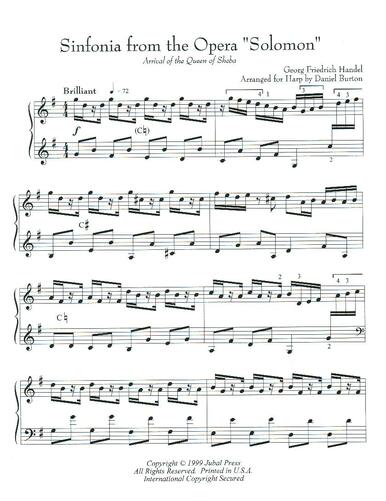 INTERMEDIATE PEDAL HARP. Also called Arrival of the Queen of Sheba, this is a bright, festive piece from the opera “Solomon.”