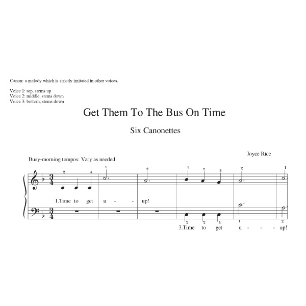 Dust Rag, Rush Hour Radio Rondo, Um, I Need A Costume For Tomorrow (with words that a harried seamstress can relate to), Get Them To The Bus On Time: Six Canonettes (also with cute lyrics), Internet Handshake: Theme and Variations, Please, Baby, Sleep, Dirty Dishes Blues. Sound file:  Um, I need a Costume for Tomorrow….