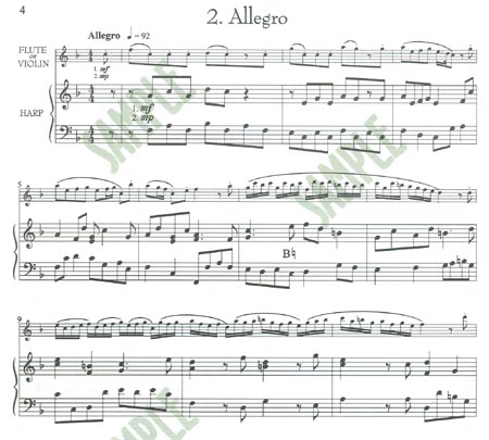 Four familiar movements arranged in medium to advanced difficulty. Excellent for wedding, reception, or concert material. Accidentals are clearly marked, three-four to four-four to twelve-eight time signatures (not in the same piece!). The harp part contains full score. Flute or violin has separate music included.
