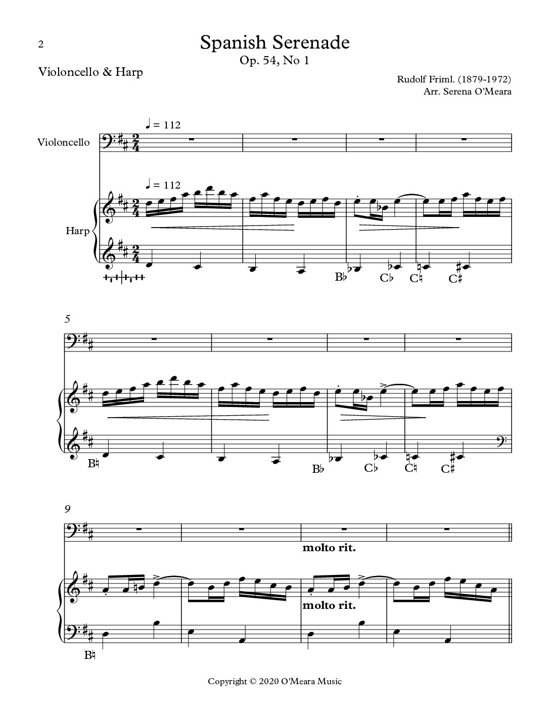 Czech born, Rudolf Friml toured the United States several times before permanently settling in New York in 1906. He composed this piece in 1909 for cello and piano. It is equally beautiful played by cello and harp. Dynamics and pedal changes are clearly marked. Score & Parts, 22 pages.