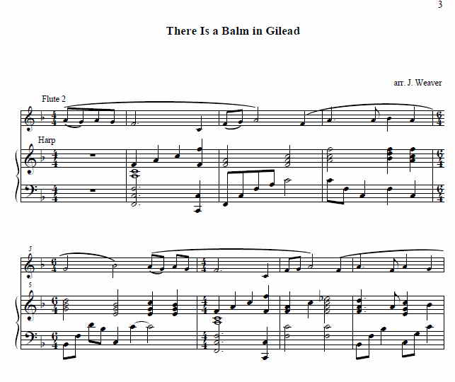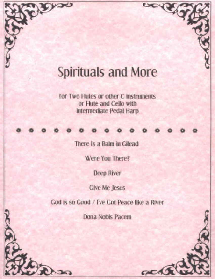 There is a Balm in Gilead, Were You There?, Deep River, Give Me Jesus (harp plus one flute or cello), God is so Good / I’ve Got Peace like a River, Dona Nobis Pacem.