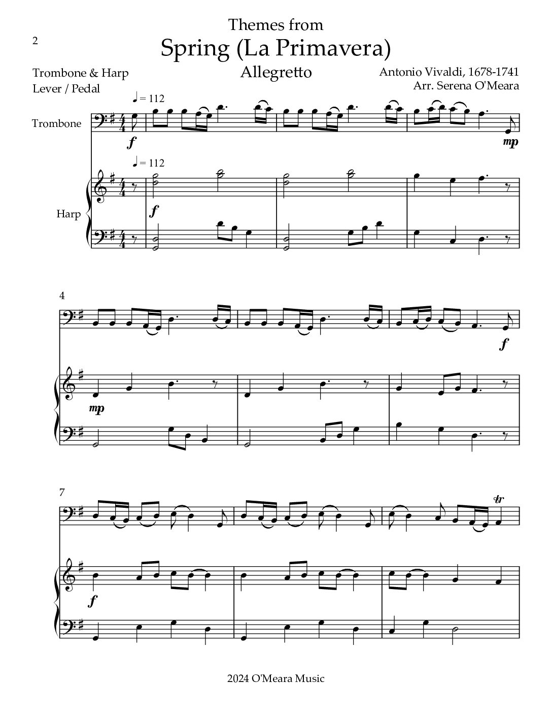 Spring (La Primavera), Duet for Trombone & Harp