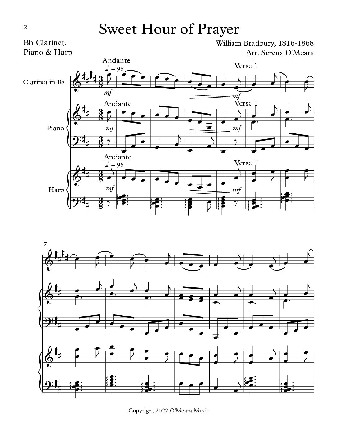 Sweet Hour of Prayer Trio for Bb Clarinet, Piano & Harp