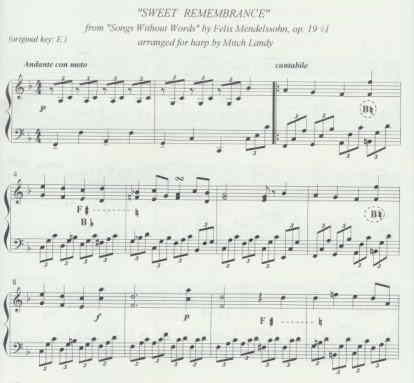 A sweet, nostalgic piece, as the title suggests, adapted for pedal harp. The left hand piano figuration, in four-note groups, would be difficult to impossible for harp, so it has been changed to three-note groups. The harmonies and voice leading have been preserved. 4 pages.