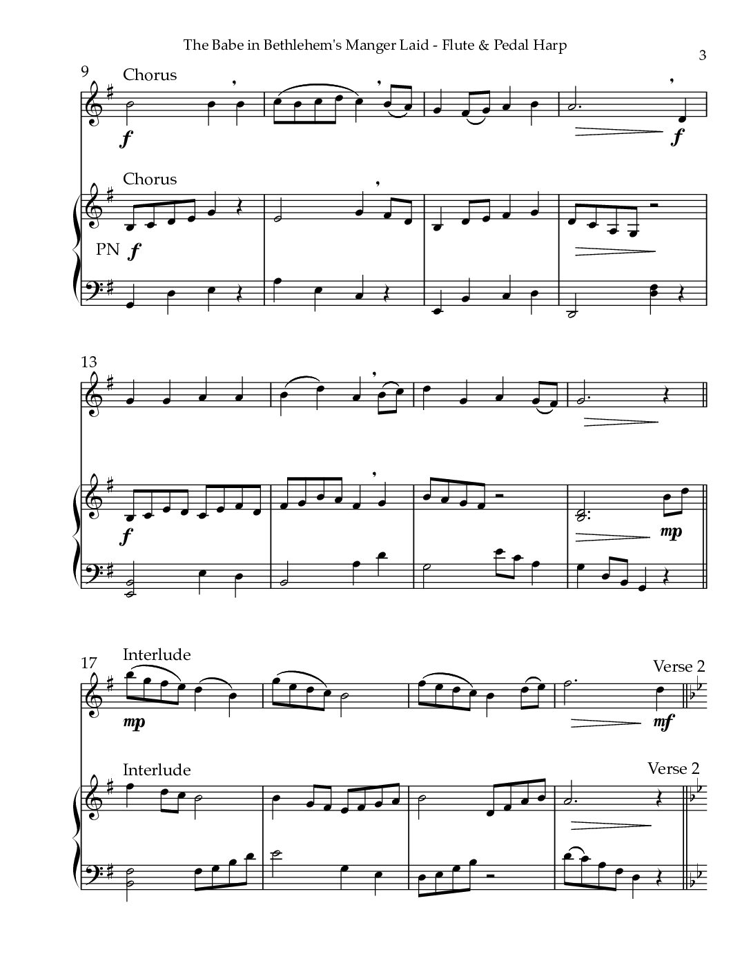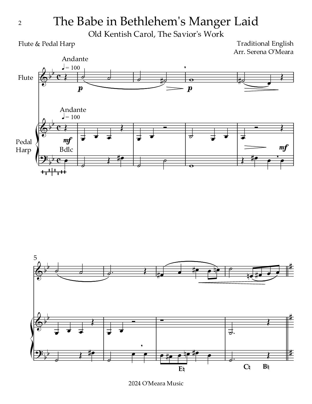 This cherished Carol recounts the birth of Christ. It was first published in 1871. The four Verses are in a minor key with the uplifting Chorus in a major key. There are Interludes after each Chorus, allowing performers to shorten the piece when needed. Commas were added to indicate the end of each phrase for musicians who aren’t familiar with the lyrics. Harp Pedals are clearly marked. Score & Parts, 14 pages.
