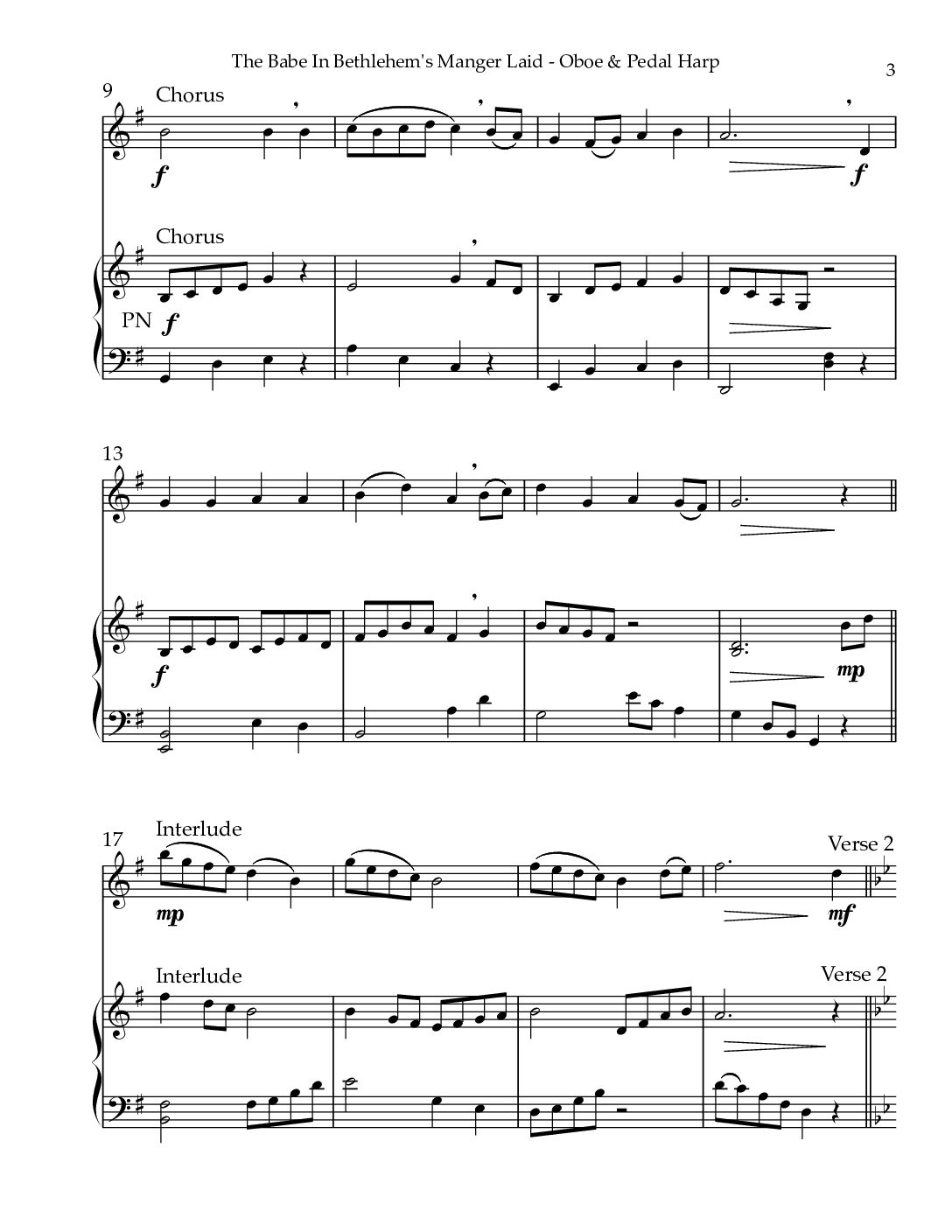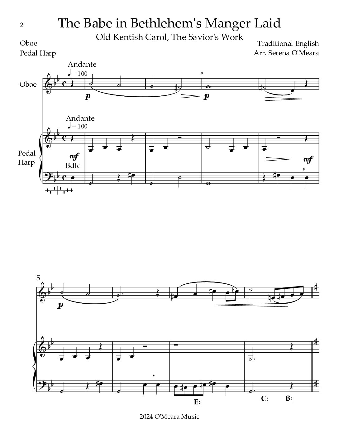 The Babe In Bethlehem’s Manger Laid, Duet for Oboe & Pedal Harp