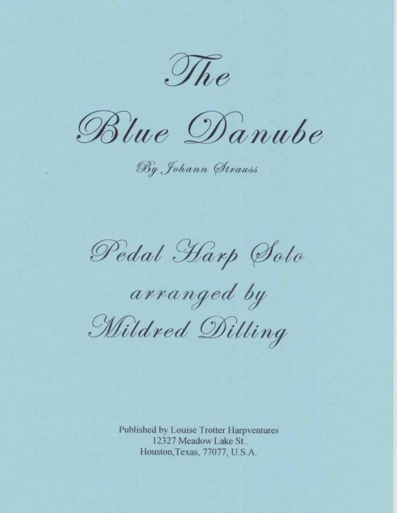 This arrangement is printed with the permission of the estate of Mildred Dilling, exactly as in the handwritten copy that she gave to Louise Trotter as a student in New York City many years ago. Miss Dilling concertized throughout her lifetime, and played this piece at most of her concerts. She helped organize the American Harp Society, and was one of the most well known harpists of the 20th century. She was a long time student of Henriette Renie in Paris, and made her debut at the Salle Erard there. She performed all over the world, incorporating into the program a demonstration of some of her rare harps which included Irish, Ethiopian, and 12thC harps. Her most famous pupil was Harpo Marx, who would sometimes show up at her concerts to play an encore. Louise Trotter has enjoyed playing The Blue Danube on countless occasions, and it is on her CD entitled “Louise”. ADVANCED INTERMEDIATE TO ADVANCED, PEDAL HARP.