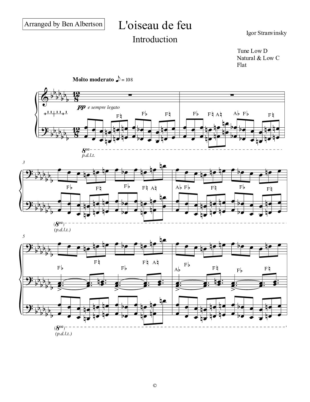 Ben Albertson’s of Igor Stravinsky’s 1919 Firebird Suite is an exquisite gem in the world of classical music arrangements! This masterful adaptation takes the splendor of Stravinsky’s orchestral masterpiece and distills it into a breathtaking solo harp performance. Any professional level harpist that wants a piece that will help them discover the limits of their technique and enhance their ability to play out will find the arrangement a fitting challenge.