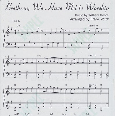 Brethren, We Have Met to Worship, Shall We Gather at the River, He Leadeth Me, Breathe on Me Breath of God, A Mighty Fortress is Our God.