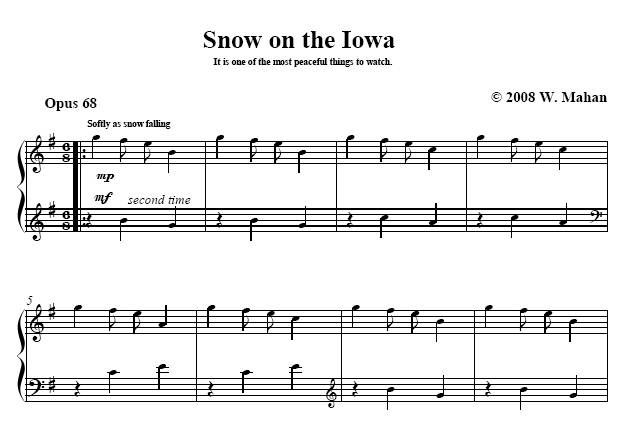 Titles are: Riverboat to Davenport, Iowa’s Mississippi, Wapsipinican Lullaby, Cedar River Song, Snow on the Iowa, Moonrise on the Des Moines, The Little Sioux, The Wide Missouri, Farewell to the Prairie.