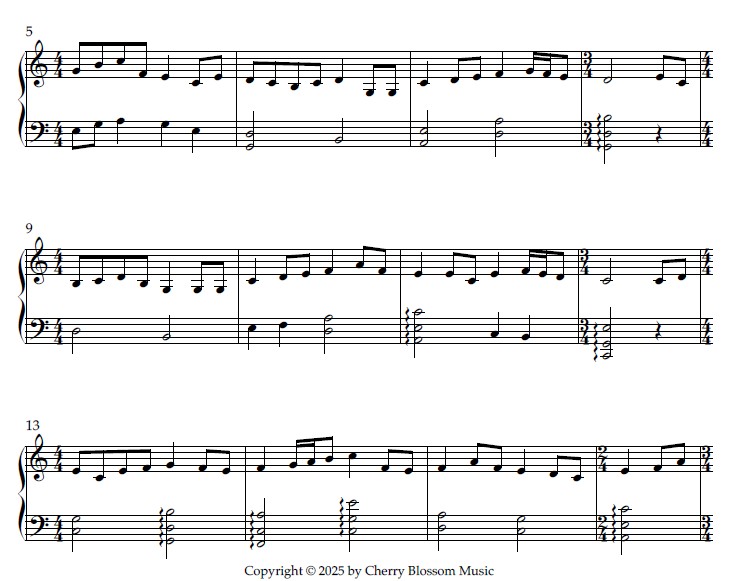Your respect of the copyright laws will help support the musicians and arrangers who created this music, and will encourage more harp music to be produced in the future. Please do not make multiple copies to pass on to others. You can help keep downloadable harp music viable and available by encouraging your students, friends, and relatives to purchase their own copies. Thank you for your assistance in this endeavor.
