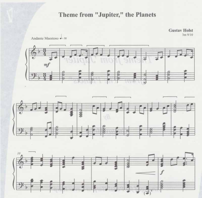 Full Title: Theme from ‘Jupiter’ from “The Planets” by Gustav Holst arranged for pedal harp or lever harp by Meredith M. Mancini