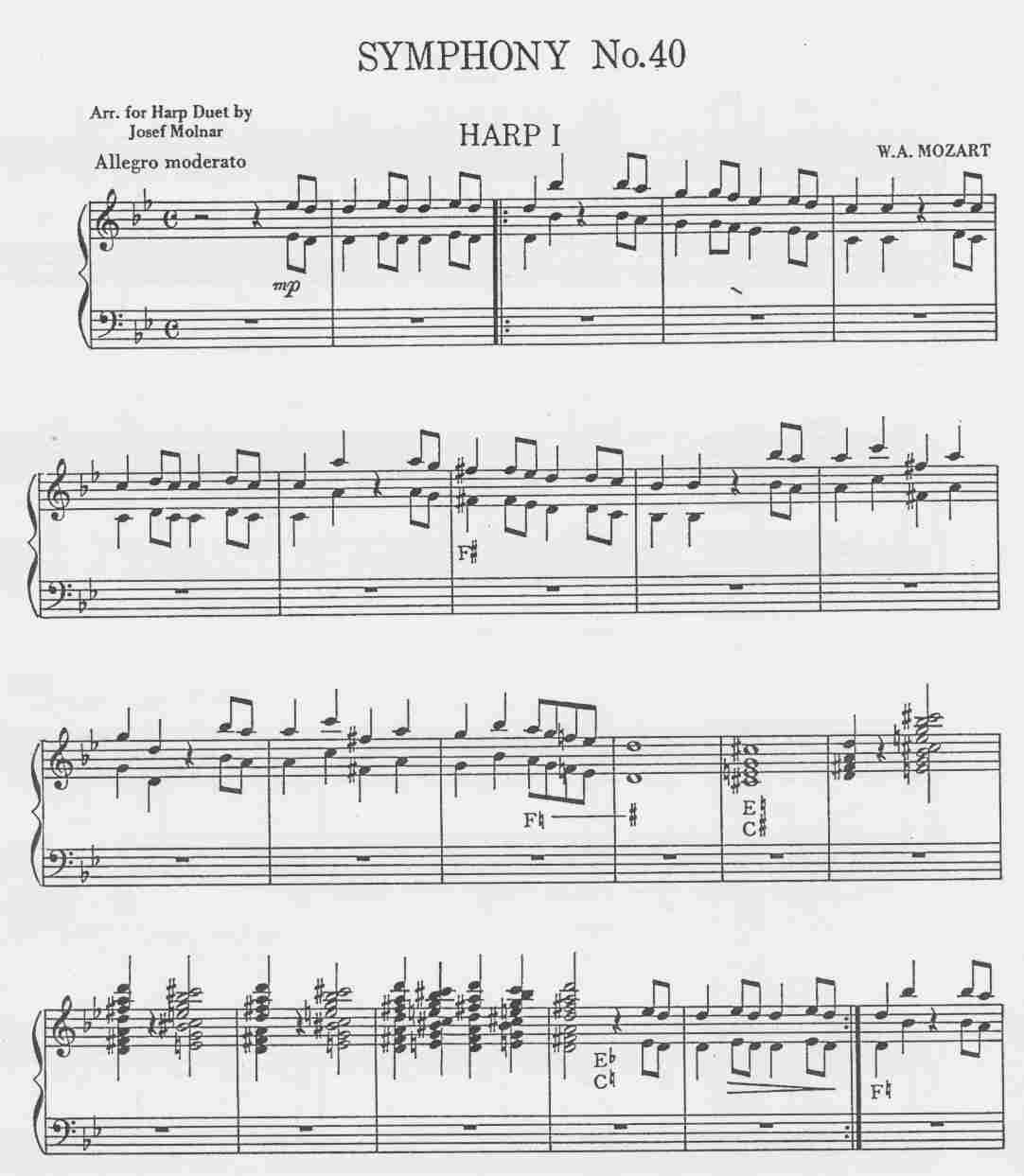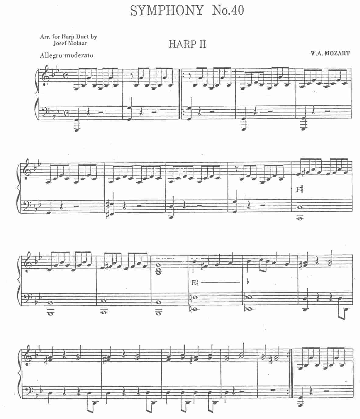 Here’s a duet that is fun to play. The tune is very familiar. It’s a little challenging because of some full chords and pedal changes. It makes a nice recital piece. The arrangement was done in 1981 and really needs to be retypeset for sharper notes, etc. But you will still be able to make out the notes well. This symphony is so great that it is worth a little inconvenience.