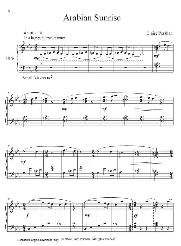 Your respect of the copyright laws will help support the musicians and arrangers who created this music, and will encourage more harp music to be produced in the future. Please do not make multiple copies to pass on to others. You can help keep downloadable harp music viable and available by encouraging your students, friends, and relatives to purchase their own copies. Thank you for your assistance in this endeavor.