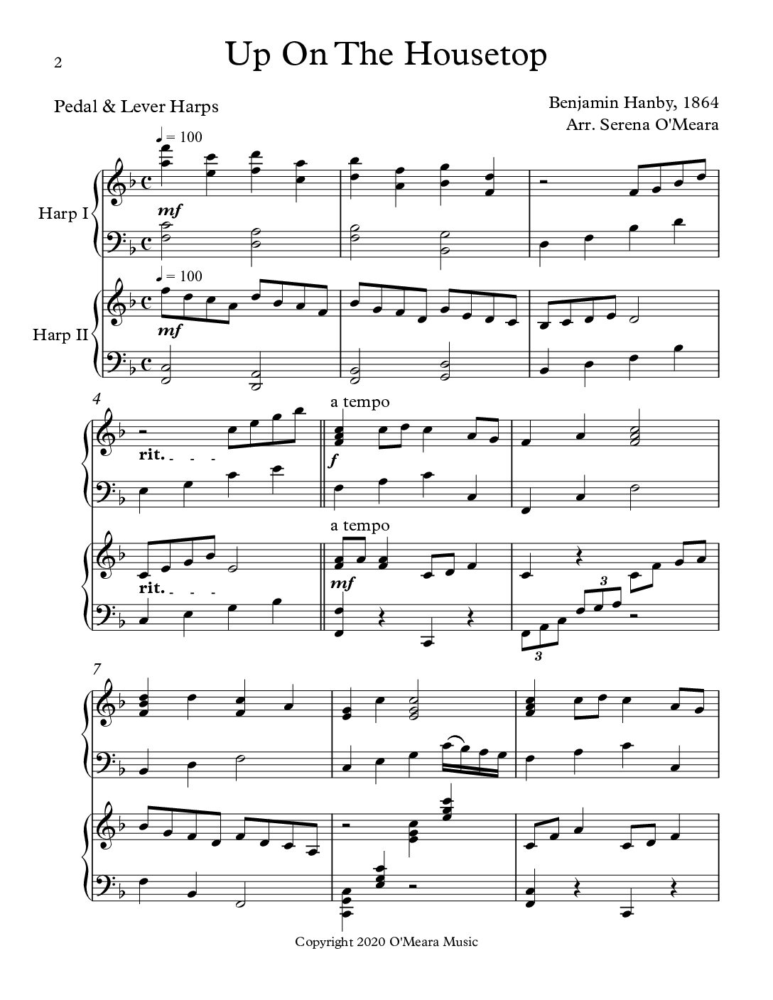 A fun 1864 Christmas song celebrating Santa Claus. Victor Herbert’s 1903 hit, Toyland, makes an appearance in the third verse. This arrangement has bells ringing, glissandos, Bdlc, and son xylo. Lever harps will play diatonic glissandos.