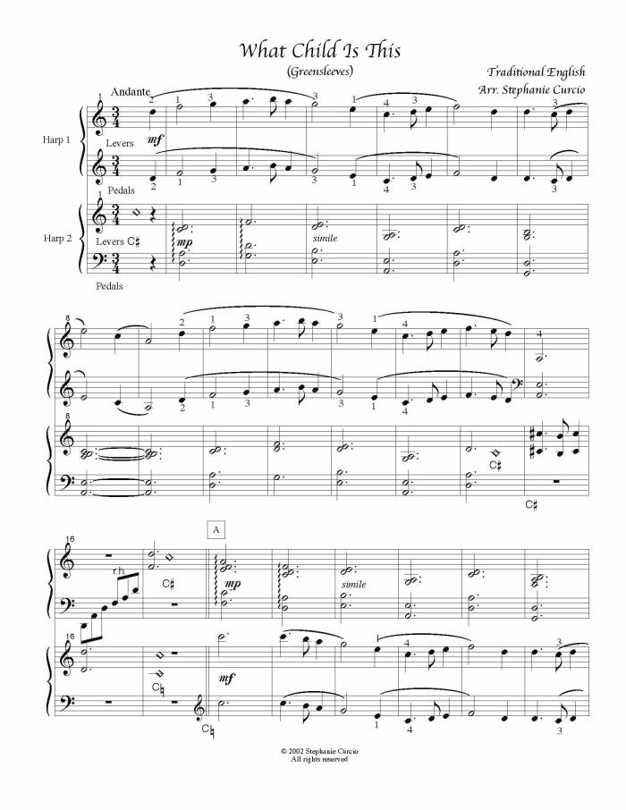 A series of favorite Christmas carols creatively arranged for two harps (lever or pedal). Levels range from advanced beginner to low intermediate and are appropriate for all ages. May also be used for larger ensembles. Printed on heavy pale green paper. LOWER INTERMEDIATE, ALL HARPS.