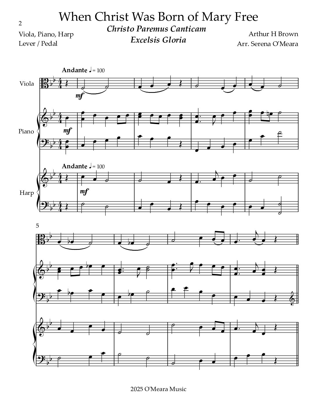 When Christ Was Born of Mary Free, Trio, Viola, Piano, Harp