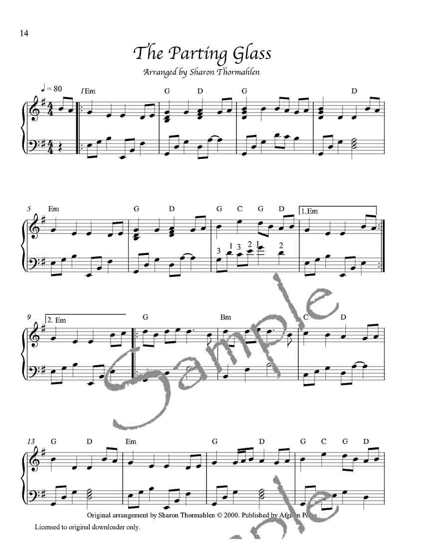 Blind Mary, Childgrove, Far From Home, French An Dro, Grandfather’s Clock, Planxty George Brabazon, Swedish Music Box, Kitty McGee, Morgan Magan, O’Carolan’s Draught, The Parting Glass, The Ashgrove, Waltzing Matilda, Simple Gifts.