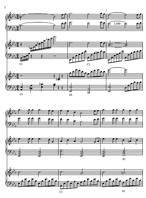 “Peace! Peace! Wonderful peace, coming down from the Father above.” Perfect peace is one of the greatest gifts. This arrangement is imbued with flowing motifs and simple counter melodies to convey the meaning of the words to the two hymns. “Like a River Glorious” is set to Saint-Saens beautiful Swan from “Carnival of the  Animals”. This piece, too, has a peaceful quality in the ever-flowing 16th notes and calm, dignified melody. It is hoped that listeners will be captivated by the mood of the songs. Harp 1 sets the third and fourth octave C-sharps and B-naturals before the piece begins. Harp 2 sets the second octave B-natural before the piece begins. Harp 3 sets the fourth octave C-sharp before the piece begins. Use two hands for the ascending fifths and sixths in m.52-54. Included are score, three separate parts, and performance notes.