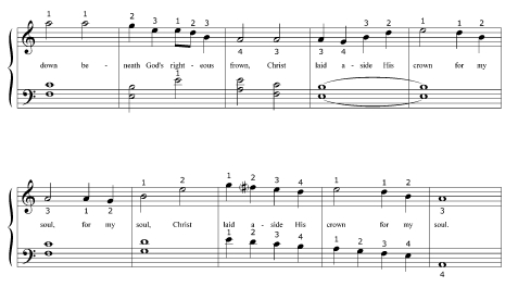 LOWER INTERMEDIATE, ALL HARPS.  A modal hymn from the shape note (sacred harp) singing which dates back to colonial New England churches.